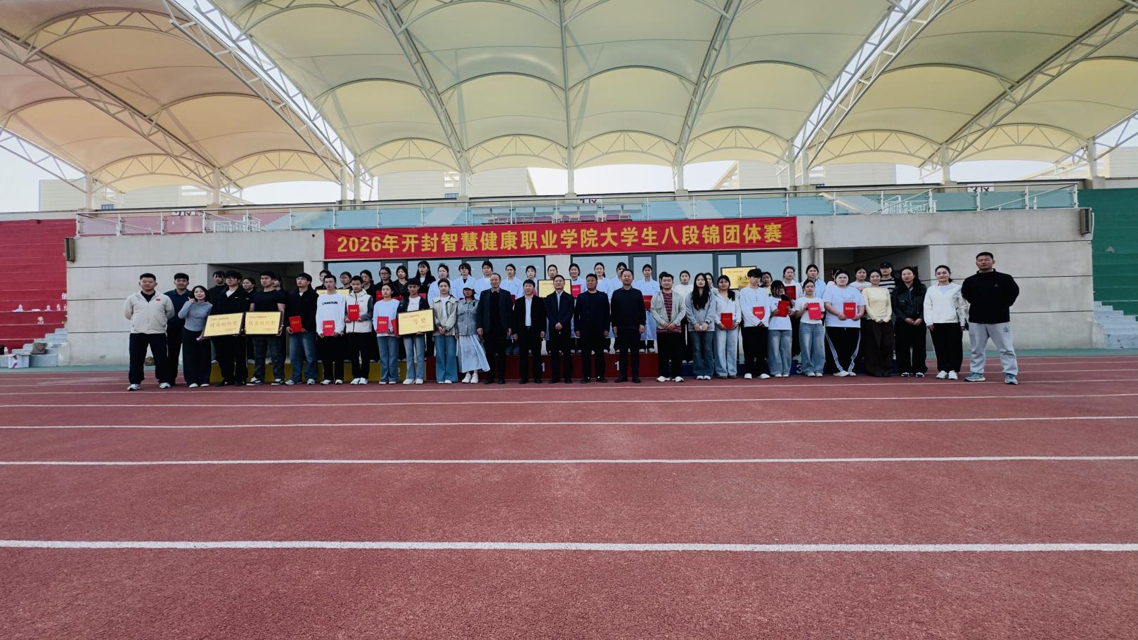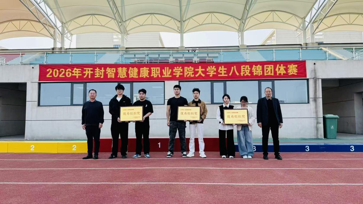 开封智慧健康职业学院第一届大学生八段锦团体赛于2026年4月1日下午16:30在操场圆满落下帷幕。